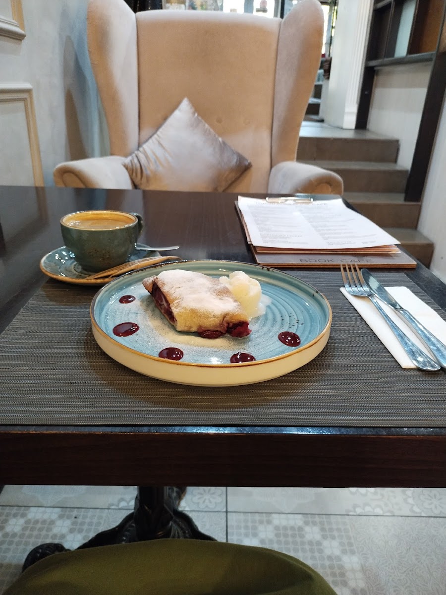 The menu at Book Cafe is extensive, featuring a variety of dishes that cater to all tastes. Standout items include the cherry strudel with ice cream, a delectable and comforting dessert that has received rave reviews. Customer Наталья shares, "I love the cherry strudel with ice cream, and I was impressed by the presentation of the pumpkin cream soup with a cheesy skewer—something I haven't seen even in St. Petersburg!" Her enthusiasm perfectly encapsulates the quality and creativity that Book Cafe brings to its culinary offerings.
